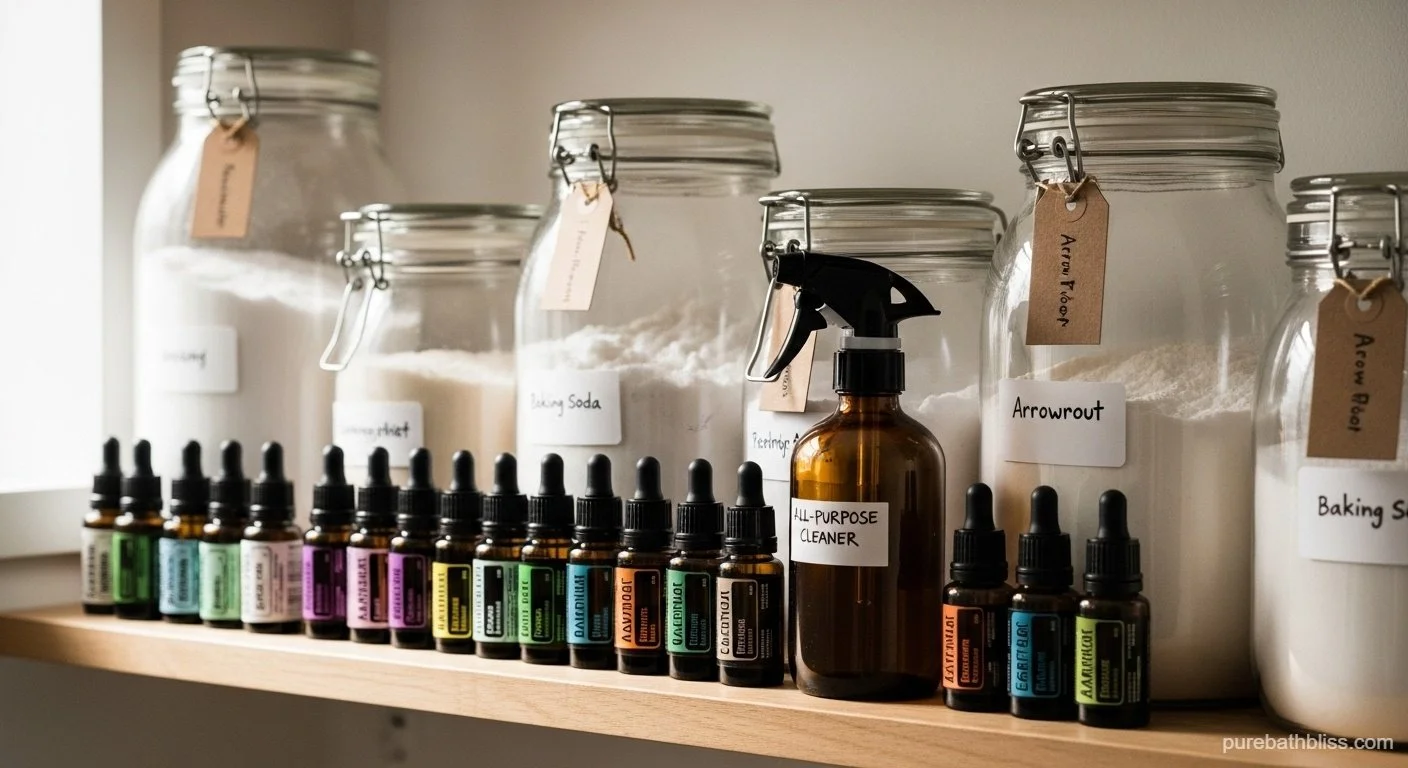 Deodorant: Recipes often involve baking soda, cornstarch (or arrowroot powder), and coconut oil, possibly with essential oils for fragrance.