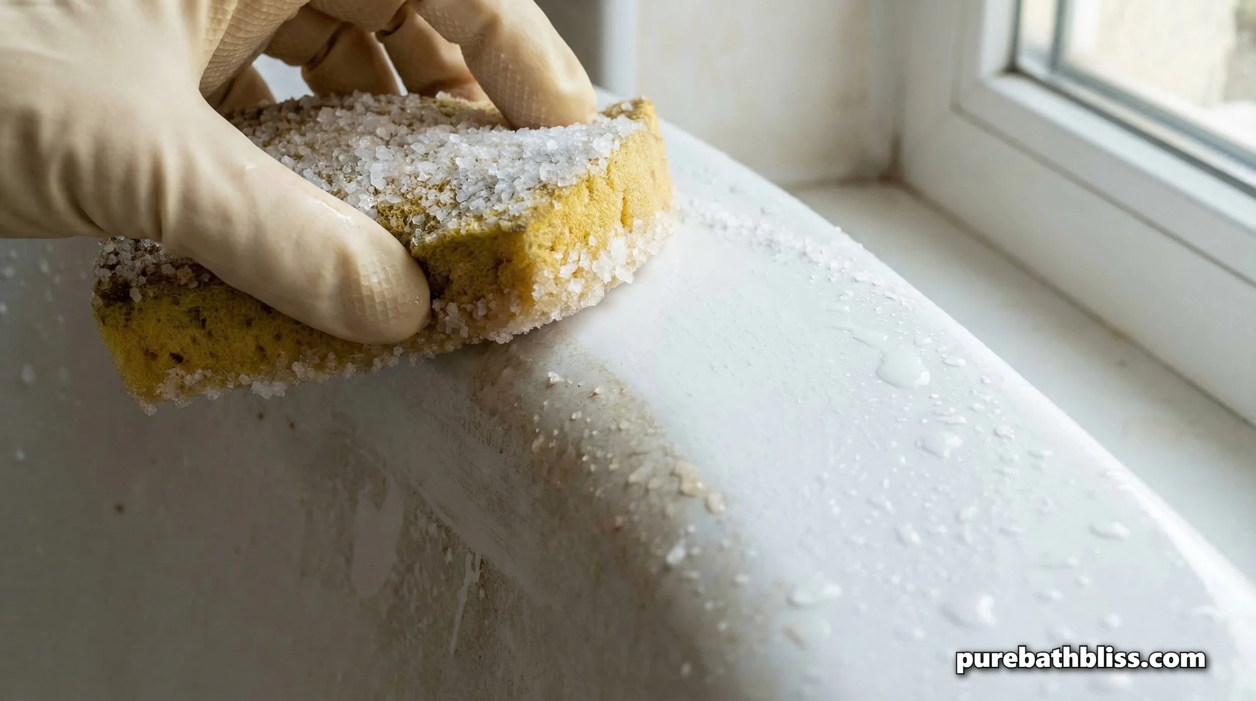 Caution: While safe for porcelain, be careful with natural stone. As we warned in Can I Use Castile Soap on Travertine and Marble Vanities?, any abrasive can eventually dull the seal on marble, so always test a small spot first.