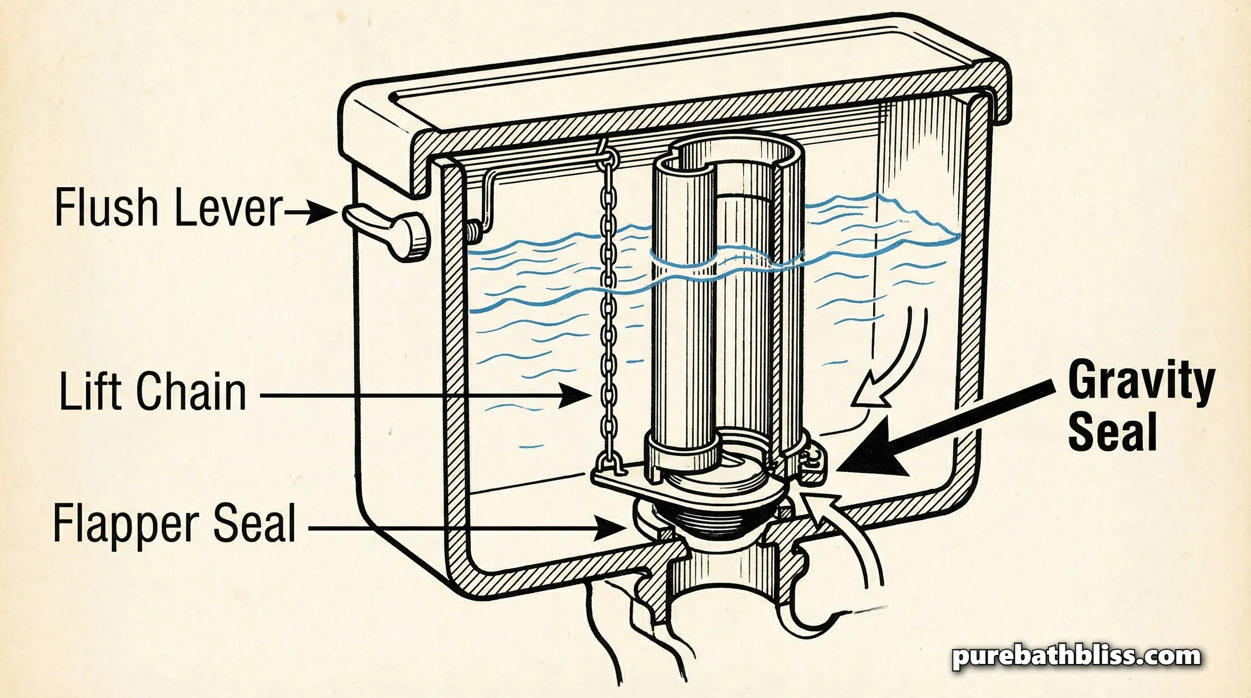 The flapper is the rubber plug at the bottom of the tank. Over time, the rubber can become "slimy" or warped. If you’ve been using harsh chemical "drop-in" tablets, the bleach has likely degraded the rubber, making it sticky.