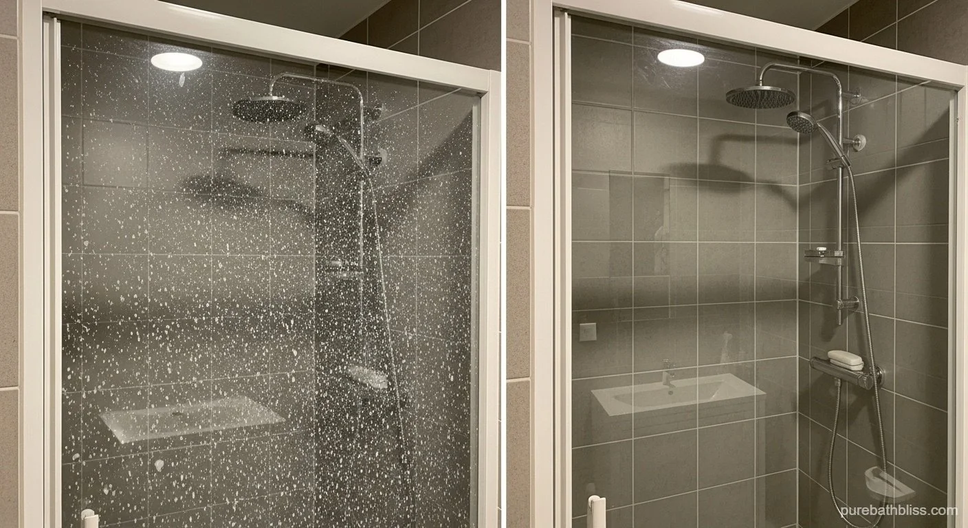 After every shower, run a lightweight silicone squeegee from top to bottom. Takes 15–30 seconds. Water never evaporates → minerals never bond.