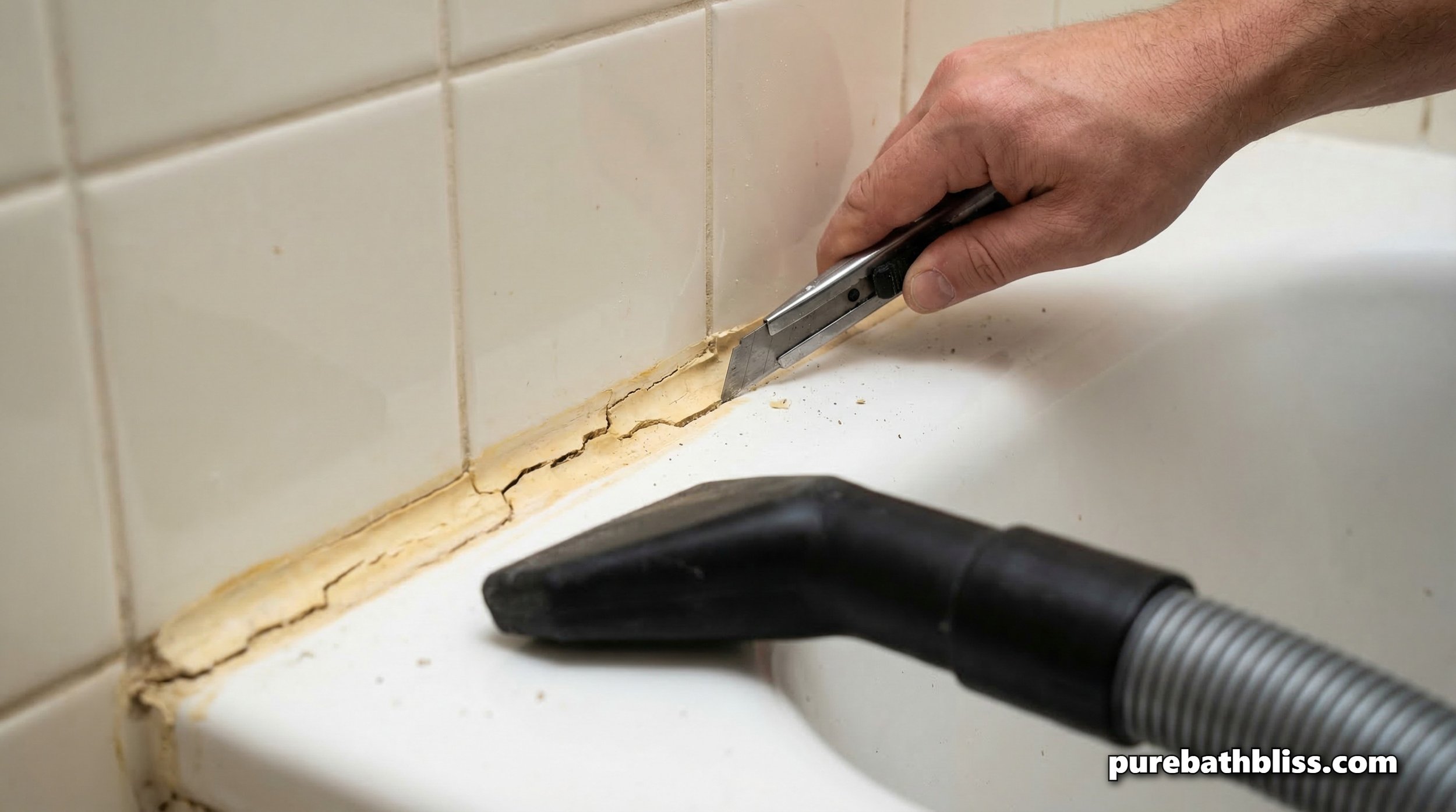 The Tools: Use a dedicated caulk removal tool or a sharp utility knife.