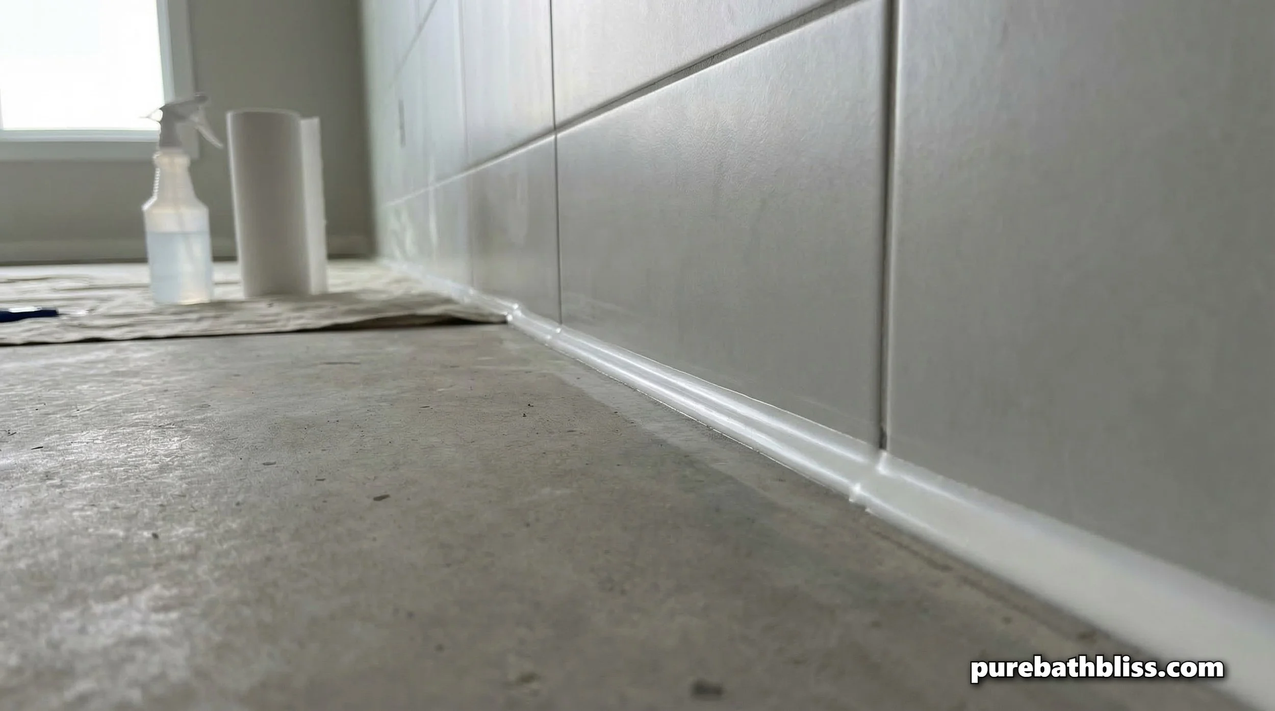 The Smoothing: Lightly mist the bead with soapy water, then run your finger along the line in one continuous motion. The soap prevents the silicone from sticking to your skin or the tiles, leaving a crisp, professional edge.