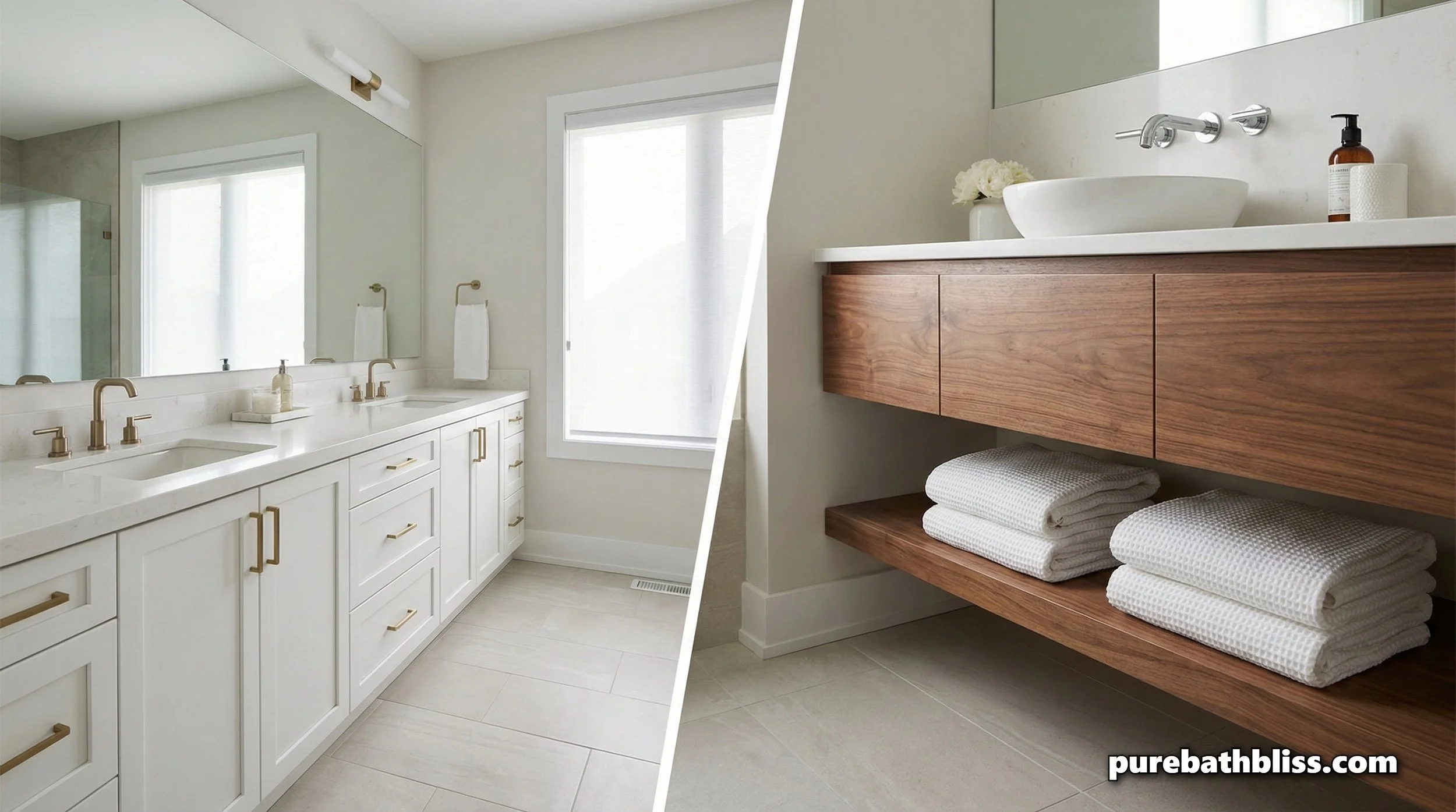 Dust Mitigation: Even in a "Pure" home, dust happens. In an open-shelf bathroom, that dust settles on your clean towels. With closed doors, the dust stays on the cabinet front, where a quick swipe with a microfiber cloth clears it away, keeping your interior storage truly clean.