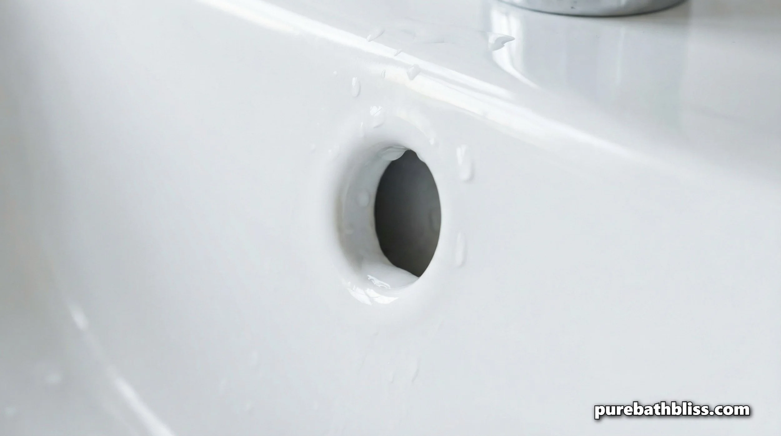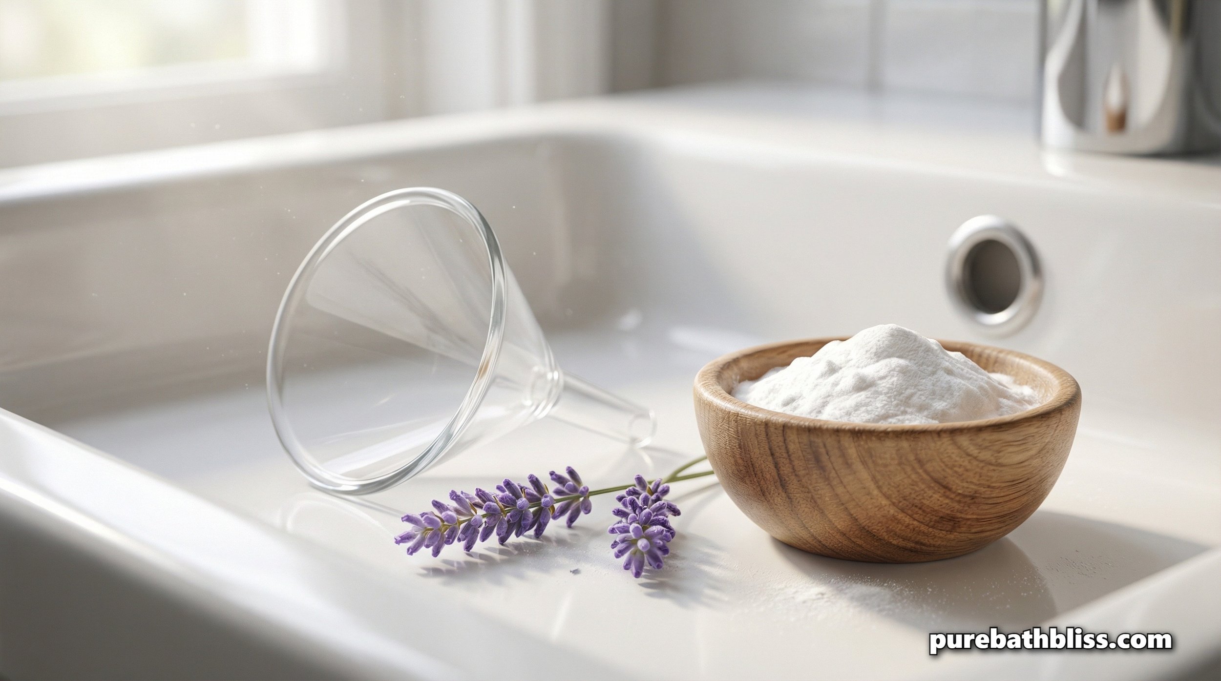 The Process: 1. Place a small funnel into the overflow hole. 2. Pour the baking soda in first, tapping the funnel to ensure it travels down the channel. 3. Slowly pour the vinegar. The resulting "fizz" is a physical reaction that expands into the hidden channel, scrubbing away biofilm without harsh acids. 4. Let it sit for 10 minutes, then flush with boiling water to melt away any lingering soap scum.