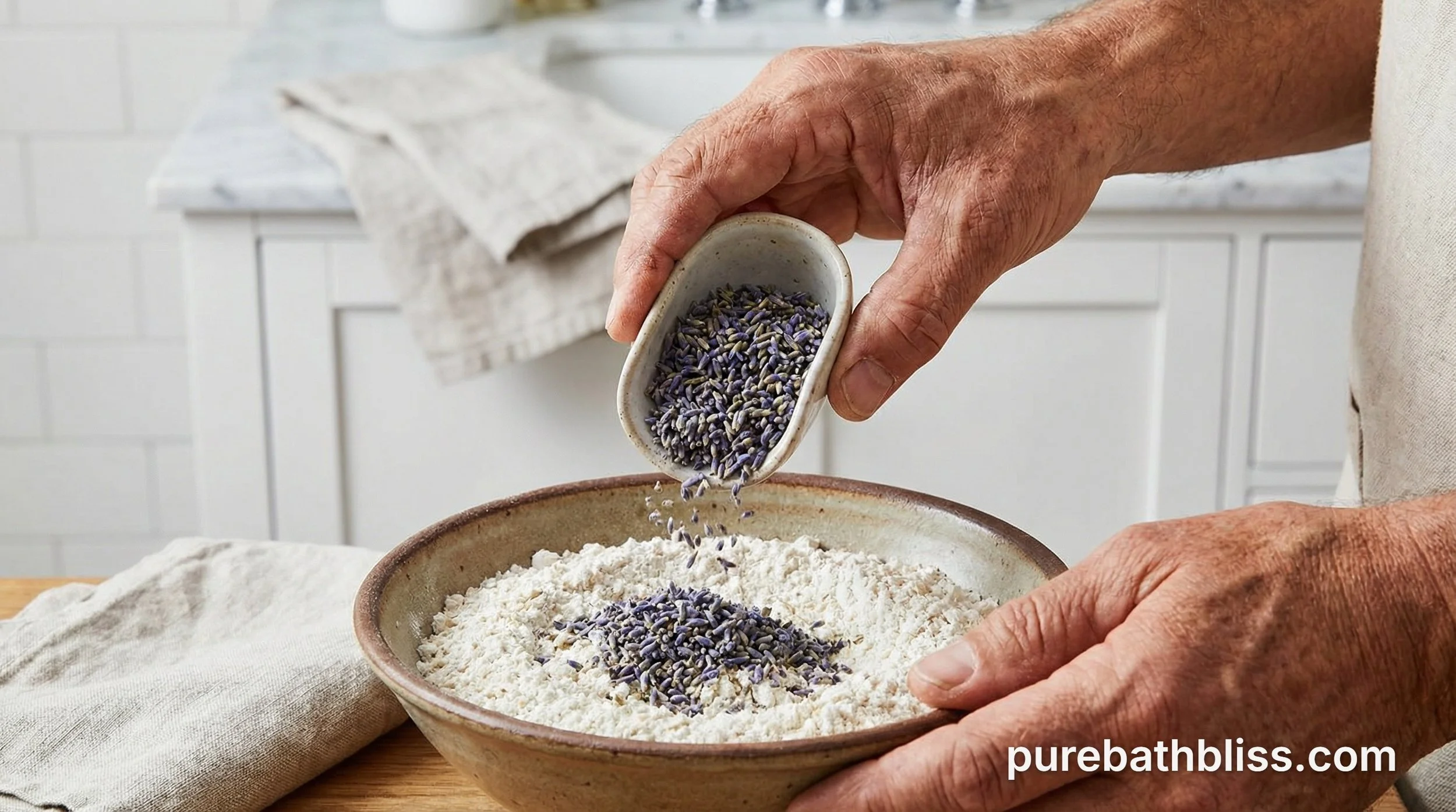 The Final Blend: Fold in the oat flour and the dried lavender buds.